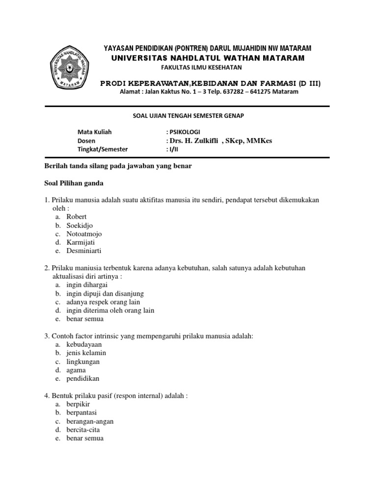 Contoh soal psikologi pendidikan dan jawabannya.